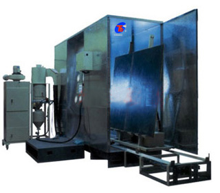此噴砂房的特點: 1、配備電動臺車輸送裝置,人員可由艙外通過操作手孔內噴砂操作 2、臺車可自動伸出噴砂房外置取工件,工件可上下移動,節(jié)省工作者不必要的移動,搬運停機時間,提高噴砂效果,減少人員污染; 3、絞攏式收砂機構,免挖地基,場地限制小; 4、有旋風回收和斗式提升回收砂材兩種機構可供選擇 ; 5、配備除塵系統(tǒng),可避免粉塵污染,并增進噴砂房內能見度; 注:可根據(jù)客戶需要定制。 ![]() ![]() 石材、玻璃雕刻專用噴砂房