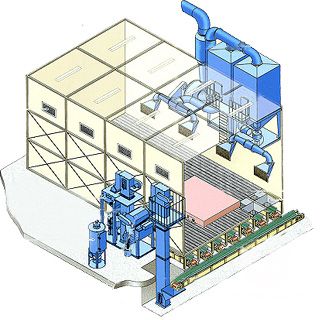 1、采用蜂窩式噴砂地板技術(shù),應用風力輸送原理將砂料回收;