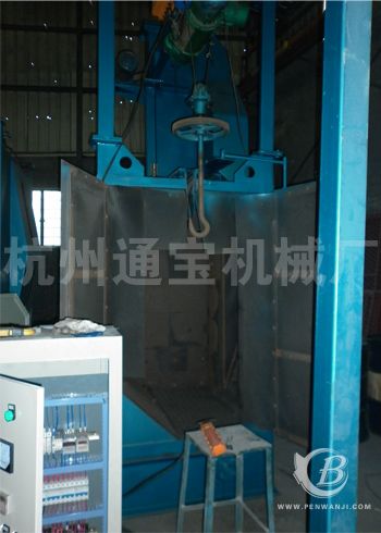 客戶專定做型單吊鉤式拋丸機屬非標型機械,是接照客戶處理產品類以及要求量所需,而設計生產的一款小號單吊鉤拋丸機,設備已調試完成,